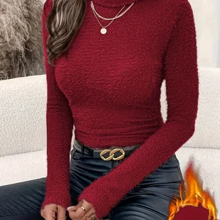 TEMU Sweter z golfem, wysoki kołnierz, moda jesienno-zimowa, jednokolorowy, ciepły sweter damski do noszenia wewnątrz i na zewnątrz - pluszowy