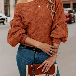 TEMU Sweter z Odkrytymi Ramionami i Rękawem Nietoperz, Elegancki Casualowy Pulower dla Kobiety na Jesień/Zimę do Stylizacji Imprezowej