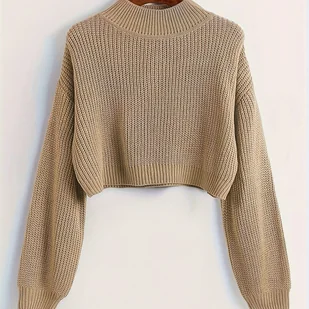 TEMU Damski sweter z wysokim dekoltem, prążkowany, z obniżonymi ramionami, idealny na jesień i zimę.