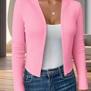 TEMU W17 Kardigan Damski Uniwersalny, Jednokolorowy, Dopasowany Krój z Długim Rękawem, Elastyczna Odzież Wierzchnia Casual