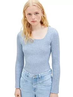 TOM TAILOR Dżinsowy sweter damski z asymetrycznym dekoltem, 33821-średnioniebieska mulina, L