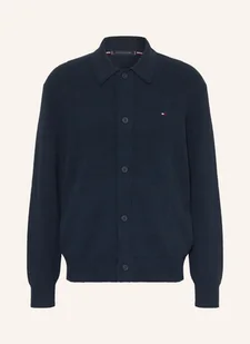 Zakończenia rękawów z patkami. Ziarnista faktura materiału. Kołnierz wykładany. Haft z marką. Jednolity kolor. Prążkowane ściągacze przy rąbku. Prosty krój. Dzianina prążkowana. Boczne kieszenie wpuszczane. Listwa guzikowa. Z bawełny. Długie rękawy. Krój wg producenta: shaped fit