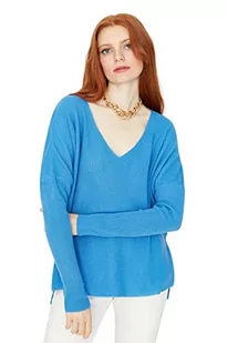 Trendyol Damska bluza z dekoltem w serek, jednokolorowa, oversize, sweter, NIEBIESKI, M