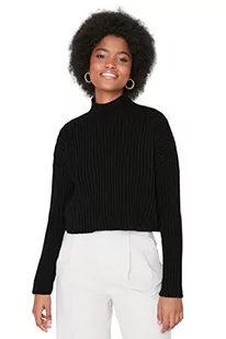 Trendyol Damska bluza z golfem, jednokolorowa, oversize, sweter, Czarny, M