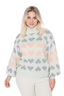 Trendyol Damska bluza z golfem w kształcie serca, regularny sweter plus size, Miętowy, 4XL Duże rozmiary