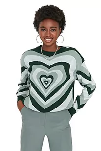 Trendyol Damska bluza z okrągłym dekoltem w paski, regularny sweter, ZIELONY, S