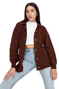 Trendyol Damska damska oversize standardowa koszula kołnierz dzianina kardigan sweter, Brązowy, M