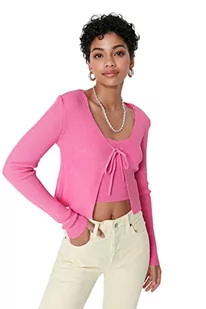 Trendyol Damski dopasowany kardigan z dekoltem w serek, Róża, M