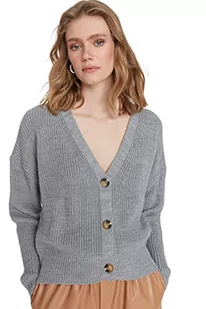 Trendyol Damski kardigan z długim rękawem i dekoltem w serek, regularny szary, Szary, L