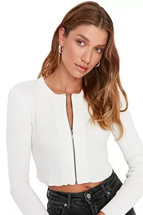 Trendyol Damski kołnierz z klapą gładki dopasowany kardigan sweter, ecru, L, Ecru, L