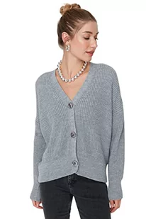 Trendyol Damski regularny kardigan z dzianiny z dekoltem w serek, Szary, L