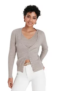 Trendyol Damski standardowy standardowy kardigan z dzianiny z dekoltem w serek, Brązowy, L
