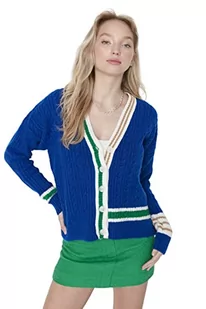 Trendyol Damski standardowy standardowy kardigan z dzianiny z dekoltem w serek, granatowy, M