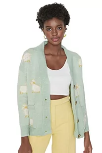 Trendyol Damski standardowy standardowy kardigan z dzianiny z dekoltem w serek, Miętowy, S