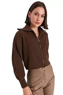 Trendyol Damski standardowy standardowy kardigan z dzianiny z wysokim dekoltem, Ciemny brąz, S