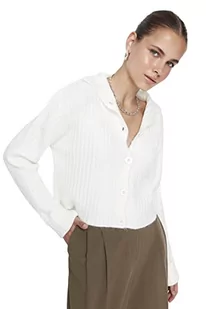 Trendyol Damski standardowy standardowy standardowy kardigan z dzianiny z wywijanym kołnierzem, Ecru, L