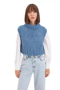Trendyol Damski sweter o regularnym kroju z wiązaniem na szyi, NIEBIESKI, L