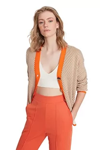 Trendyol Damski sweter rozpinany z dekoltem w serek z kolorowymi blokami, wielbłądzi, S, Wielbłądzi, S
