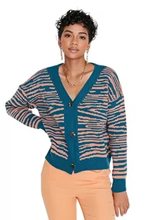 Trendyol Damski sweter rozpinany z dekoltem w serek z nadrukiem zwierzęcym, turkusowy, S, Niebieskozielony, S