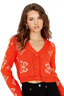 Trendyol Damski sweter z dekoltem w serek z nadrukiem zwierzęcym, pomarańczowy, S, pomarańczowy, S