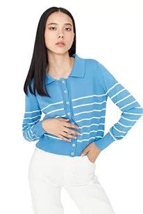 Trendyol Damski sweter z okrągłym dekoltem w paski, niebieski, M, NIEBIESKI, M