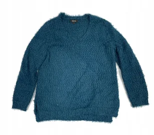 Turkusowy sweter z włoskami Stan: Używany Marka: Reaction Rozmiar XL rozmiar damski dokładne wymiary w parametrach. Doskonała jakość produktu 45% poliester 2...