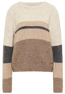 usha BLUE LABEL Damski sweter z okrągłym dekoltem, wełniany biały brązowy, M/L, Wełniany biały brązowy, M-L