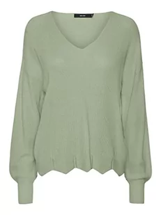 VERO MODA Vmnewlexsun Scallop Ls V-Neck Pull Ga sweter damski, Reseda, XS