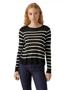 VERO MODA Women's VMNOVA LS O-Neck GA sweter damski, czarny/paski: brzoza, XL, Czarne/paski: brzoza, XL