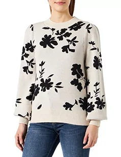 Vila Damski sweter z dzianiny Viril L/S Jacquard Flower Knit Top-Noos, Super Light Natural Melan/wzór: kwiatowy żakard, XS