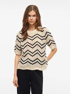 Vila Sweter "Autra" w kolorze kremowo-czarnym