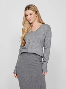 VILA EVOKED BY VILA Damski sweter VIRIL z dekoltem w serek L/S Knit top/cur-NOOS cienki pulower, jasny szary melanż, 48