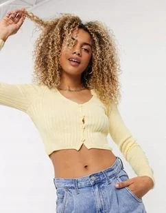 ŻÓŁTY SWETER KRÓTKI GUZIKI DŁUGI RĘKAW 42 ZAW