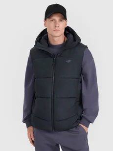 Bezrękawnik męski z wypełnieniem w postaci puchu syntetycznego Bezrękawnik kamizelka męska z puchem syntetycznym, który jest trwalszy i łatwiejszy w utrzymaniu niż puch naturalny. Nawet przy kontakcie z wilgocią, zachowuje swoje właściwości izolacyjne przez dłuższy czas oraz o wiele szybciej schnie. Dodatkowo nie wymaga skomplikowanego procesu prania i suszenia. Funkcjonalne rozwiązania dla maksymalnego komfortu hydrofobowa impregnacja i lekka konstrukcja Hydrofobowa powłoka impregnacyjna pokrywa zewnętrzną warstwę materiału i zabezpiecza ją przed wchłonięciem wody. Powłoka sprawia, że wilgoć skrapla się na powierzchni tkaniny, po czym swobodnie po niej spływa.