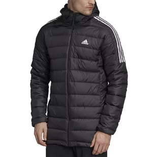 Kurtka męska adidas Essentials Down Parka GH4604 – czarna Stylowa i ciepła kurtka parka dla mężczyzn. Schludny design uzupełniony został małym logo na lewej piersi i kontrastowymi trzema paskami wzdłuż ramion. Wypełnienie z kaczego puchu zapewnia ciepło, a wodoodporna powłoka DWR – suchość.
