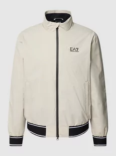 Bluzon męski EA7 Emporio Armani;Prosty krój;Jednolity kolor;Wykończenia z paskami w kontrastowym kolorze;Nadruk z logo;Stójka;Zamek błyskawiczny dwustronny;Wpuszczane kieszenie;Długość tyłu w rozmiarze M: 59 cm;Szerokość ramion w rozmiarze M: 48 cm;Szerokość klatki piersiowej w rozmiarze M: 55 cm;Długość rękawa w rozmiarze M: 67 cm