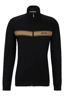 BOSS Męska kurtka Authentic Jacket Z z bawełny organicznej z zamkiem błyskawicznym, logo i paskami, czarny, XL
