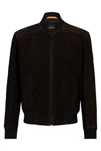 BOSS Męska kurtka Jamaro ze skóry z naszywką z logo, ciemnobrązowy, 44