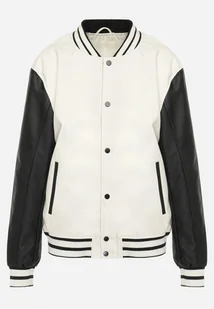 Czarno-Beżowa Kurtka Bomberka ze Ściągaczami i Rękawami z Ekoskóry Livern