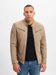Finshley & Harding Męska kurtka skórzana Mężczyźni skóra beżowy|brązowy jednolity, S