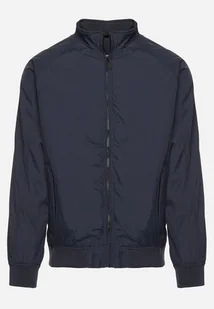 Granatowa Kurtka Typu Wiatrówka z Kieszeniami na Suwaki Nollafa