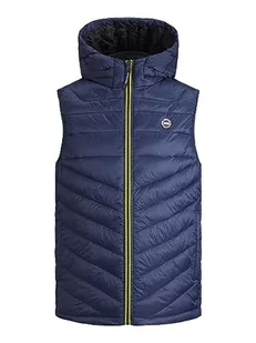 JACK & JONES Jjehero Bodywarmer Hood Quilted Jacket męska kurtka, Granatowy blezer/Szczegóły: Safety Yellow Contrast Zip, XL
