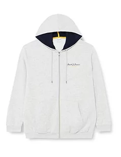 JACK&JONES PLUS Męska kurtka z kapturem JCOBERG Sweat Zip Hood PLS, Light Grey Melange/Szczegóły: Turk Melange, 4XL