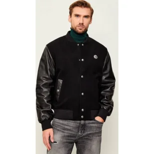 Just Cavalli Wełniana kurtka bomber | Regular Fit | z dodatkiem skóry