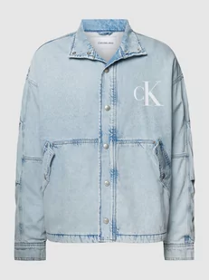 Kurtka jeansowa damska Calvin Klein Jeans;Czysta bawełna;Oversized;Kołnierzyk typu kent;Listwa guzikowa;Nadruk z logo;Kieszenie z patką;Sportowe mankiety;Długość tyłu w rozmiarze M: 72 cm;Szerokość ramion w rozmiarze M: 64 cm;Szerokość klatki piersiowej w rozmiarze M: 66 cm;Długość rękawa w rozmiarze M: 64 cm