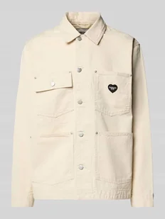 Kurtka jeansowa męska Carhartt Work In Progress;Czysta bawełna;Prosty krój;Model ‘DREWE CHORE’;Wykładany kołnierz;Listwa guzikowa na całej długości;Nakładane kieszenie;Naszywka z logo;Długość tyłu w rozmiarze M: 71 cm;Szerokość ramion w rozmiarze M: 41 cm;Szerokość klatki piersiowej w rozmiarze M: 62 cm;Długość rękawa w rozmiarze M: 66 cm