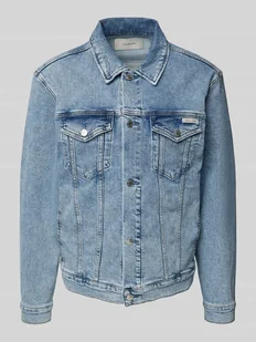 Kurtka jeansowa męska Calvin Klein Jeans;Mieszanka bawełny z dodatkiem streczu;Krój slim fit;Wykładany kołnierz;Listwa guzikowa na całej długości;Kieszenie z patką na piersi zapinane na guzik;Naszywka z logo;Długość tyłu w rozmiarze M: 66 cm;Szerokość ramion w rozmiarze M: 49 cm;Szerokość klatki piersiowej w rozmiarze M: 41 cm;Długość rękawa w rozmiarze M: 65 cm