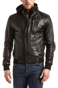 Kurtka skórzana męska marki Blue Wellford Wykonana ze skóry owczej wysokiej jakości Kaptur z dresowej tkaniny z regulacją Trzy zasuwane kieszenie Dół i rękaw...