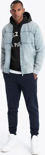 Kurtka męska jeansowa bomberka z efektem stone wash jasnoniebieska V3 OM-JADJ-0163 L