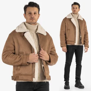 Kurtka Męska Kożuch Z Kołnierzykiem Pilotka Ocieplana Brązowa S